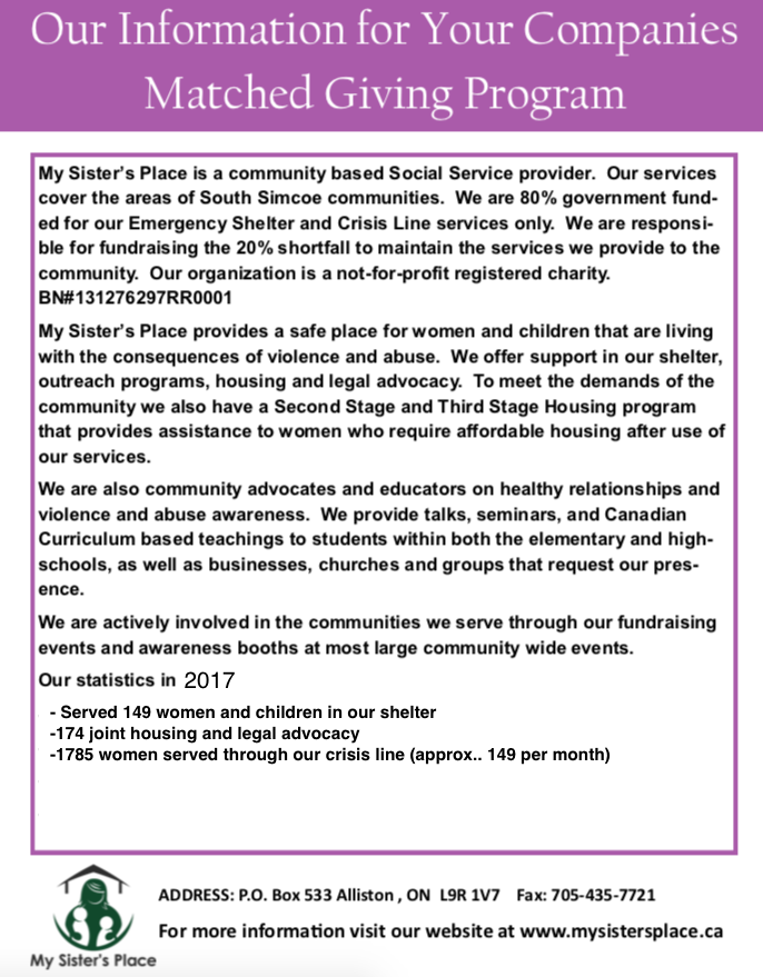 Matched Giving is a way for companies to support their employees' efforts by matching their donations to the charities they feel passionate about. They often will match an employee gift DOLLAR for DOLLAR.
