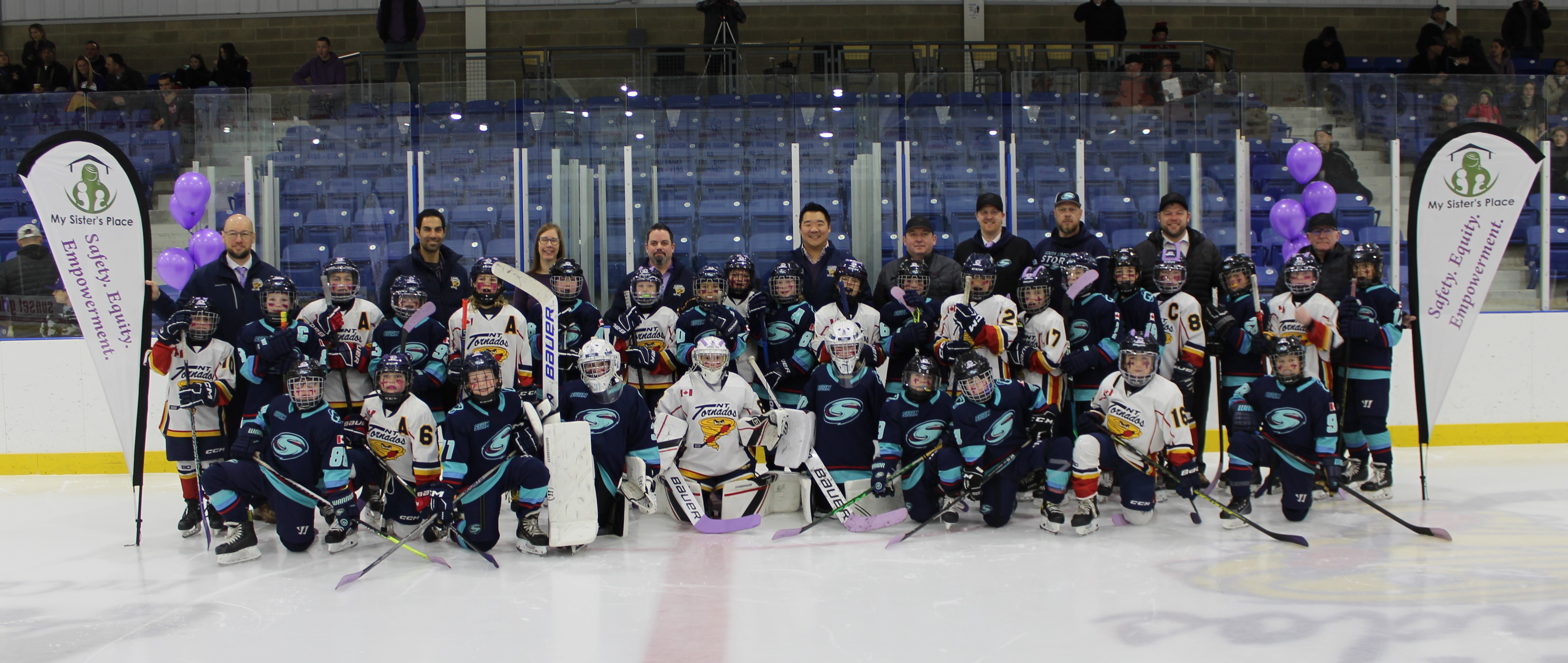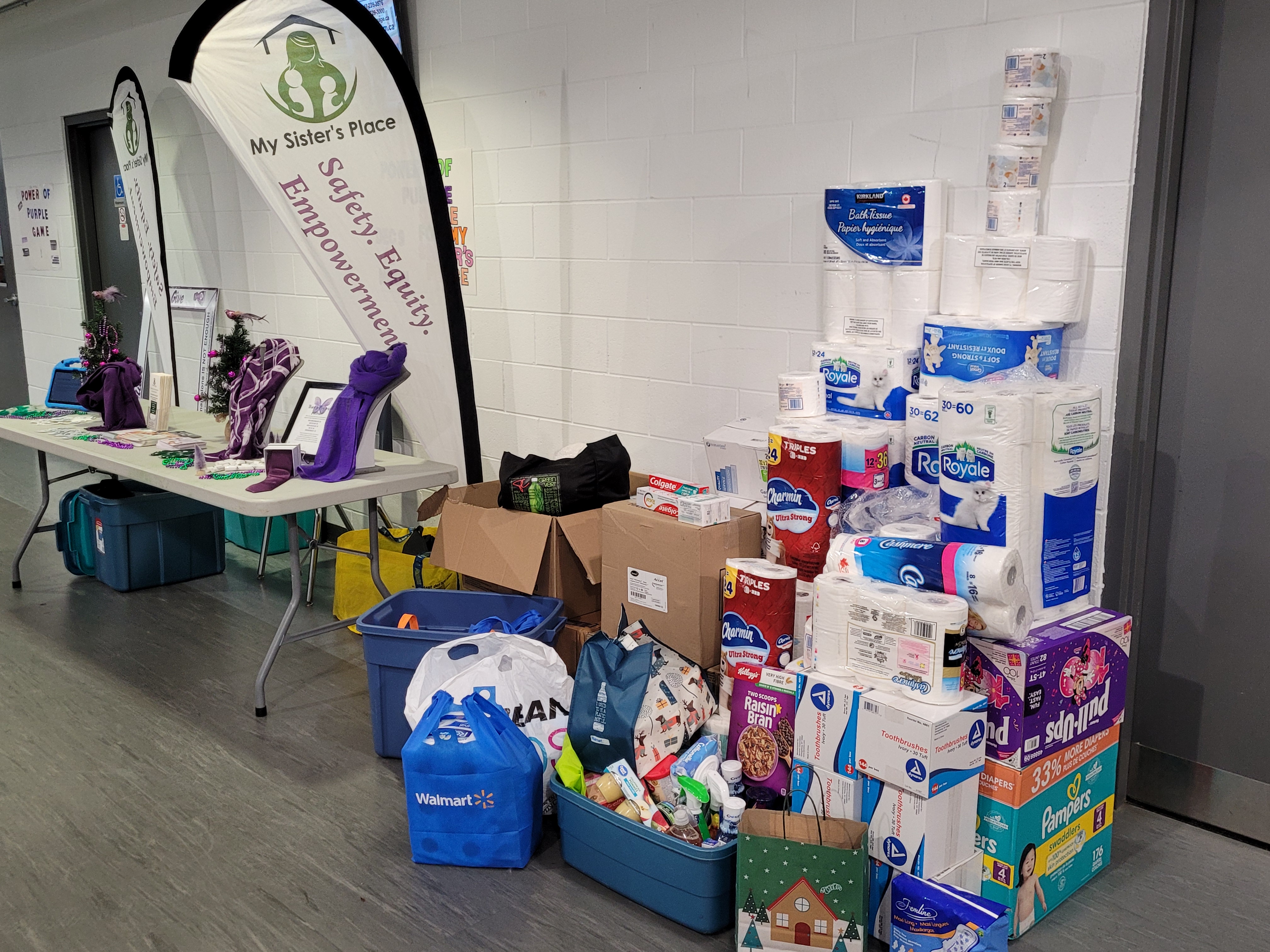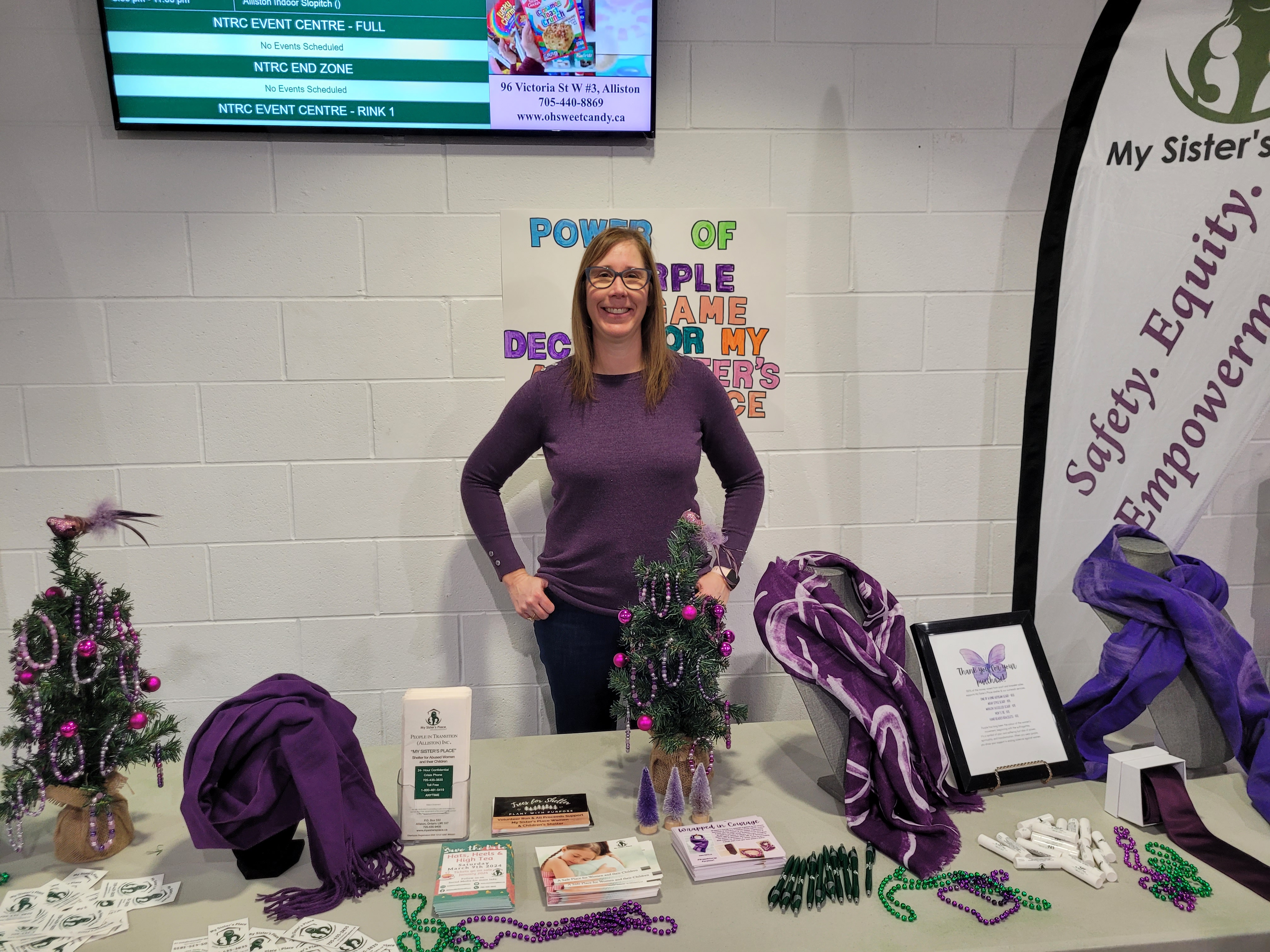 Saturday December 9th the U10 TNT hockey team hosted the Power of Purple hockey game, along with the visiting team the South Simcoe Storm, they collected a trailer load of items that were on our most needed wish list. The team, with the help of their families also ran a bake sale that raised $600. There was a face painting table and we were invited to be a part of the event selling our Wrapped in Courage items. Purple was everywhere, even down to the smallest details on the players sticks and helmets! A huge thank you to Derek French, the U10 TNT team and their families for organizing such am amazing day. We are so thankful and grateful for community supporters!