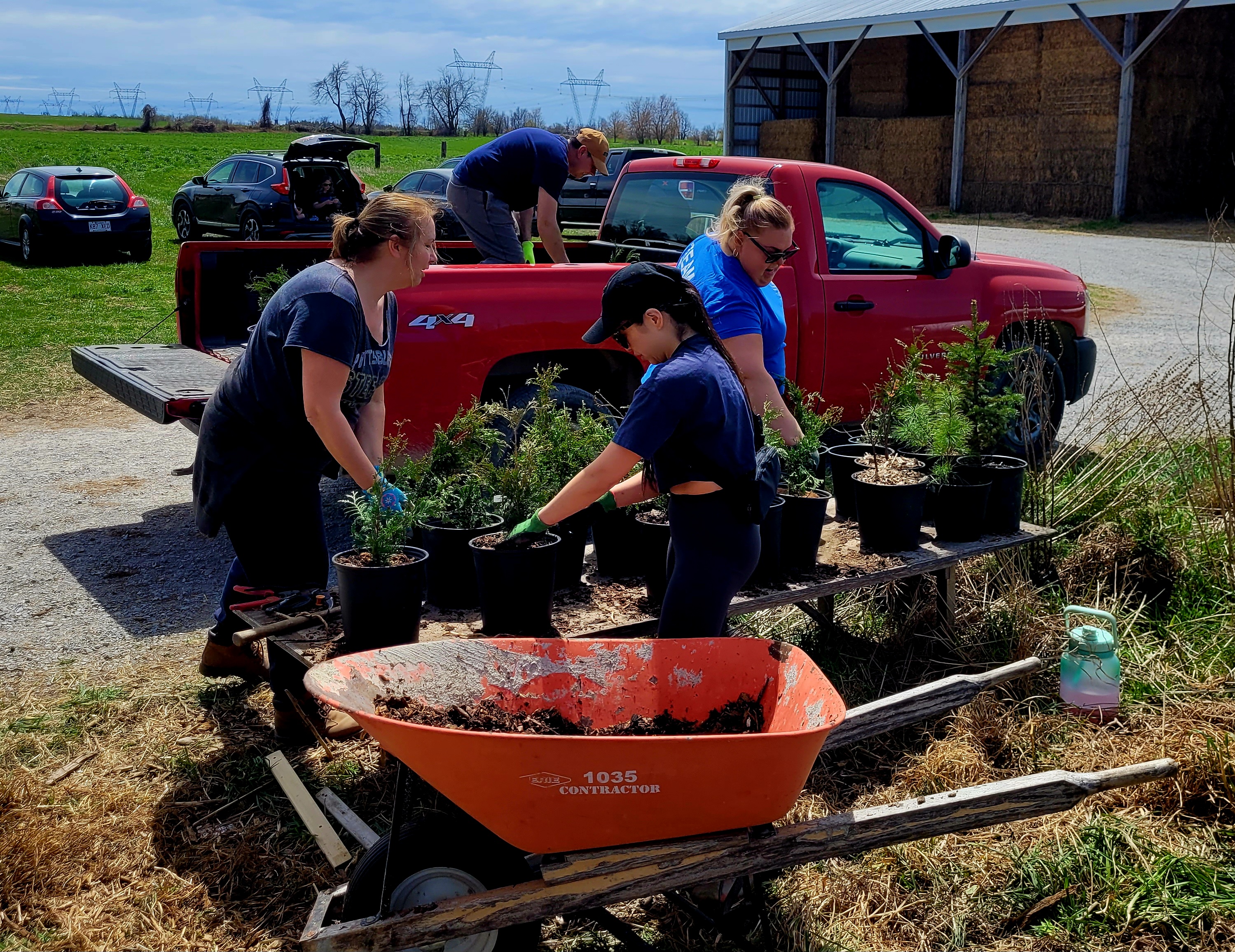 Thank you to everyone who came out and volunteered their time, and thank you to Juste from the Alliston RBC Branch for organizing a group from the bank to help. It was a beautiful day to plant some trees.